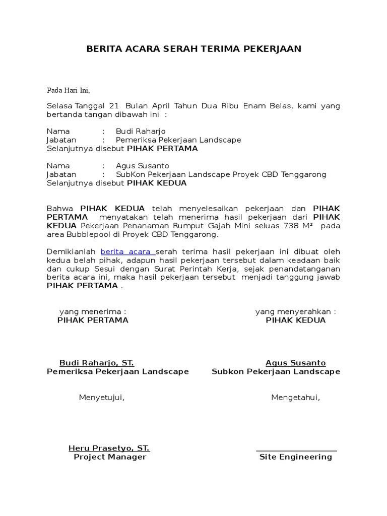 Berita Acara Serah Terima Hasil Pekerjaan Pdf