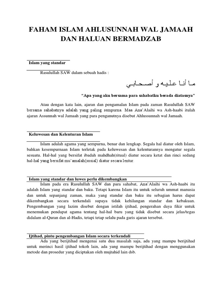 Faham Islam Ahlusunnah Wal Jamaah Dan Haluan Bermadzab Pdf