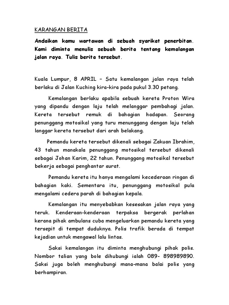 Karangan Berita Kemalangan Jalan Raya Sekolah Menengah Gallery Baru